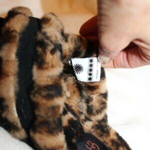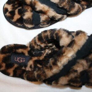 NIB UGG WOMEN'S PANTHER PRINT FUR SLIDE SLIPPER SANDALS BLACK BROWN
