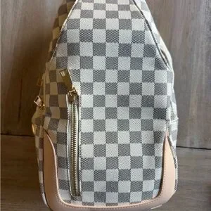 New without tags. Stylish and versatile women's bag featuring a checkered beige and cream design with a touch of light peach. Perfect for everyday use. 13.5in x 8in. Adjustable strap.