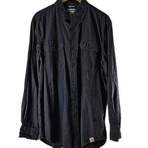 Carhartt Mens Sz L Relaxed Fit Button-Down Long Sleeve Grunge Shirt Charcoal Gray