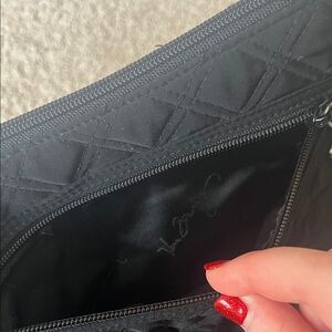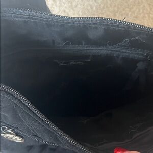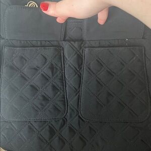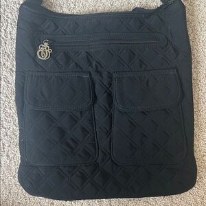 Stylish crossbody bag. Features quilted design. Two front pockets. Adjustable strap.