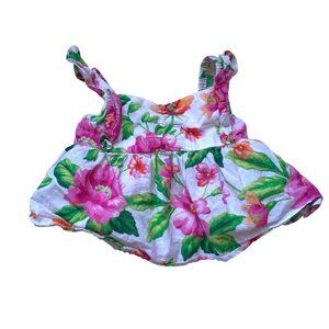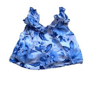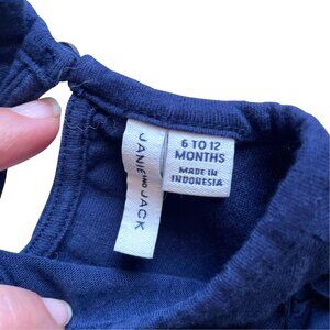Selling a cute set of four (4) gently used baby girl tops, perfect for spring and summer. This bundle includes three various floral print tops and one solid navy blue t-shirt with ruffled sleeves. These items are great everyday essentials and from highly sought-after children's clothing brand Janie & Jack
