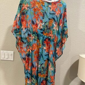 Tommy Bahama Tropical Paradise V-Neck Swim Coverup in Turquoise and Coral