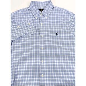 Ralph Lauren Shirt Mens LG Blue Plaid Classic Fit Performance Button Down