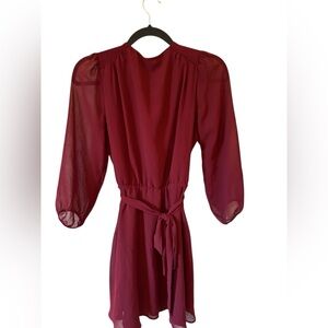Description • New with tags from Dynamite • Deep wine red color with semi-sheer chiffon sleeves • Flattering V-neckline and button front closure • Adjustable waist tie belt for a feminine silhouette • Lightly flared skirt with flowy movement • Lined body, sheer 3/4 puff sleeves • Includes extra button ⸻ Style tags: Chic, Elegant, Romantic, Date night, Holiday, Fall fashion, Winter fashion, Feminine, Modern, Parisian, Cocktail, Dinner, Party, Semi-sheer, Chiffon, Burgundy, Wine red, Mini dress, Dynamite