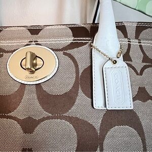 Coach Signature Khaki Ivory Large Madeline Tote Handbag11558