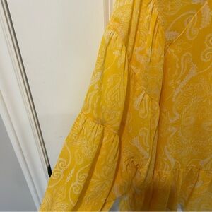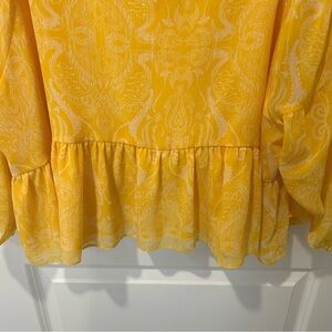 Gentle Fawn Yellow Paisley Print Long Sleeve Peplum Blouse Top