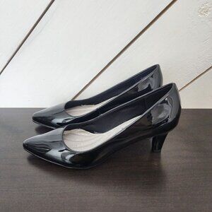 NEW Easy Street Pointe Womens 5.5 M Black Faux Patent Pumps Black 3CT