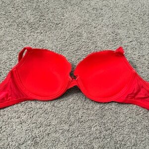 Forever 21 Red Lace Push Up Bra with Bow Sexy Valentine’s Day Lingerie Size 36C