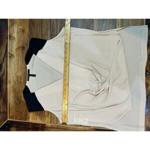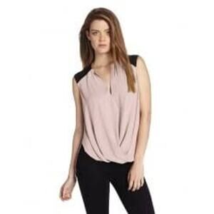 BCBGMAXAZRIA Women's Beige Black Gisele V-neck Draped Front Blouse Top Size L