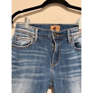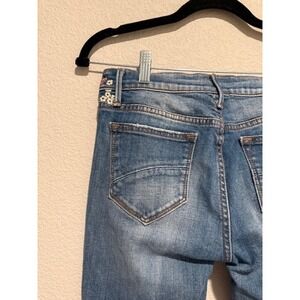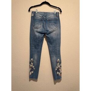 Excellent condition Embellish your denim collection with these captivating Driftwood jeans. Intricate floral embroidery blooms along the legs, adding a touch of artisanal charm and vibrant color to your look. The classic blue wash and flattering skinny leg silhouette create a timeless appeal