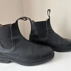 Step out in style with these sleek black leather square toed Chelsea boots from Blundstone. Perfect for any occasion, these boots offer both comfort and elegance.
