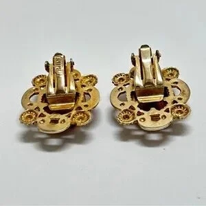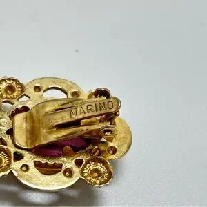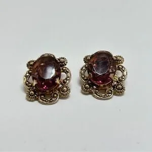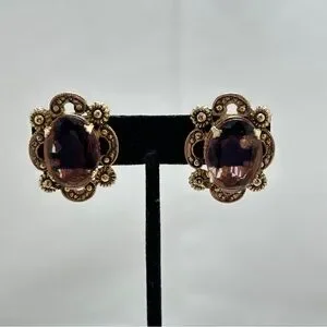 Marino, Vintage Gold And Purple Glass Cabochon Earrings, Clips, Marino 1932-1978