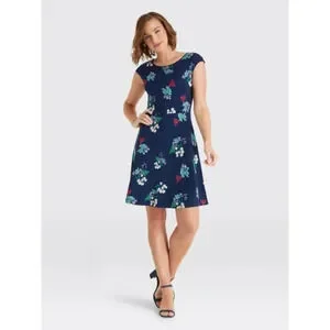 Draper James Floral Ponte A-Line Dress Navy Blue. Size XS.