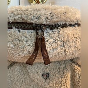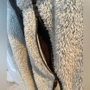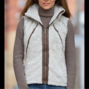 KÜHL Flight Vest Italian Fleece Stowable Hood Full Zip Cream Tan Brown Warm Cozy