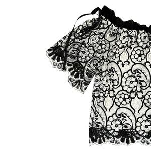 ALEXIS "IMENA" BLACK WHITE EMBROIDERED LACE OFF SHOULDER TOP BLOUSE XS