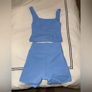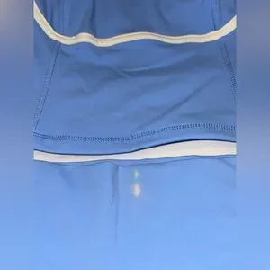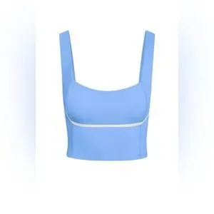Stylish blue tank top with white trim. Perfect for casual wear.