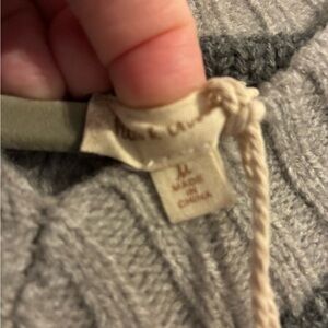Stay warm and stylish with this classic gray cable knit sweater. The light grey is accented with darker grey. It is a cable knit sweater.