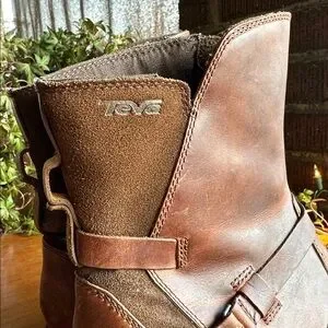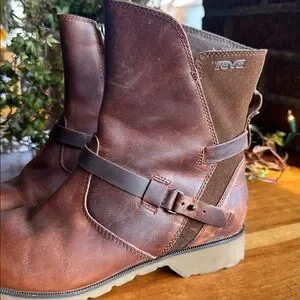 Teva Delavina waterproof tan leather upper casual/moto/outdoors low boot. Size 9