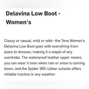 Teva Delavina waterproof tan smooth/suede leather upper low boot. In very nice condition. Size 9
