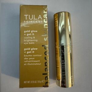 TULA Skincare Gold Glow + Get It Cooling & Brightening Eye Balm. Luxurious gold color.