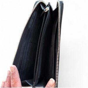 Coach long zip-around wallet with a grey and black leopard print canvas. Black leather lining. Like-new condition on both interior and exterior.