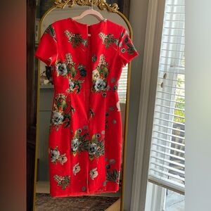 Black Halo Vibrant Red Floral Jodie Sheath Midi Dress