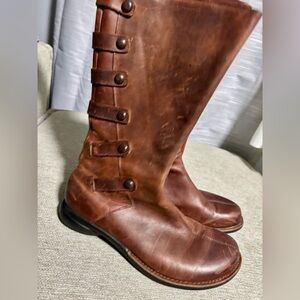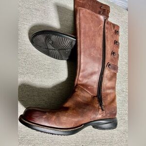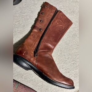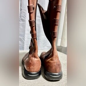 Elegant chestnut leather boots with side strap accents. Perfect for any occasion.