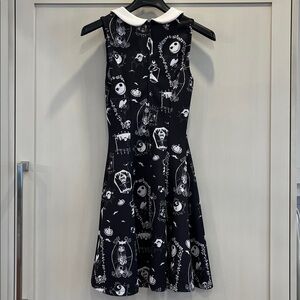 Disney Nightmare Before Christmas black skater style sleeveless dress with white collar and centre back zip. Unlined. Classic black and white style.