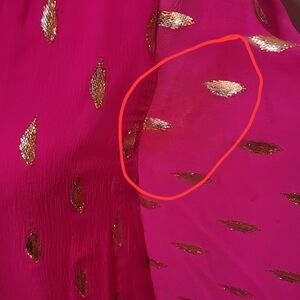 It is in used condition with normal wear and tear. look at pics there is avstain on the front armpit, I think it was lipstick.