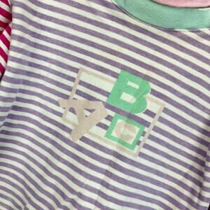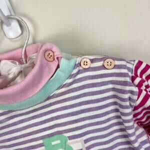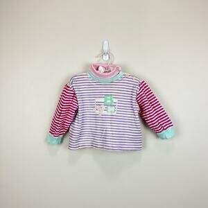 Vintage Happy Kids Striped ABC Shirt. Baby toddler girl size 18 months. Love the color block mixed stripes! Long sleeve top in pink, purple, and green. Buttons on the shoulder for easy on/off.