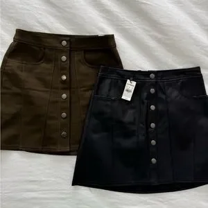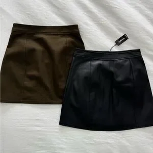 Express New Black Faux Leather and Like New Army Green Mini Skirt