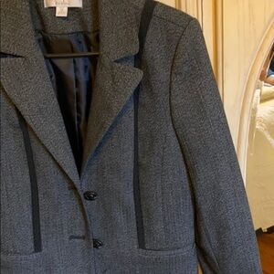Caslon gray and black suit jacket with lace detailing down the front, back and on sleeve cuff. 2 front functional buttons and usable pockets. Size is a 10P Perfect condition!