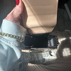 Stylish brown crossbody bag with gold chain and monogram design. Features a secure clasp closure. this is a inspired Louis Vuitton. It is not high-quality, but it is a great phone case that is very chic.
