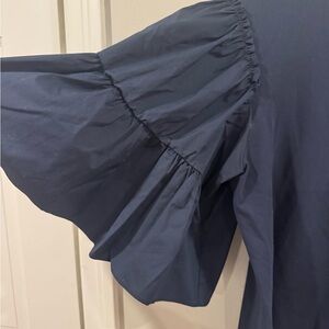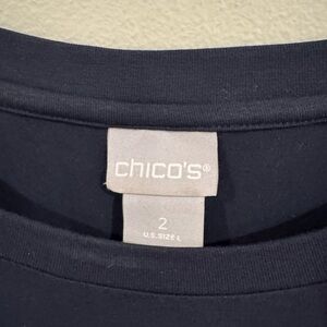 Chico's Womans T Shirt Navy Ruffle Flutter Sleeves Stretch Size 2 (Large)