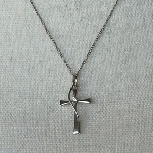 Sterling Silver Crystal Cross Necklace Stamped 925 19" Faith Approximately 1" Pendant