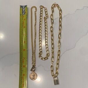 3 Gold Layered Chain Necklaces with Pendant, lock