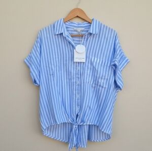 Beach Lunch Lounge | Striped Tie-Front Button Down - L