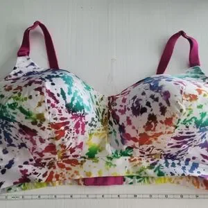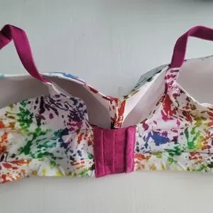 Vibrant and stylish bra featuring a splash of colors in tie dye pattern. Perfect for Pride or adding a fun pop of color to your intimates collection.