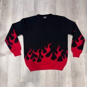 Hot Topic Men's XL Red and Black Flames Sweater Knit Pullover Rock N Roll Punk
