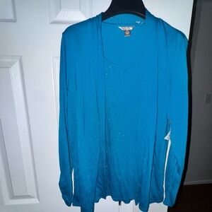 White Stag Women's M Turquoise Open Front Cardigan & Camisole Set with Sequins