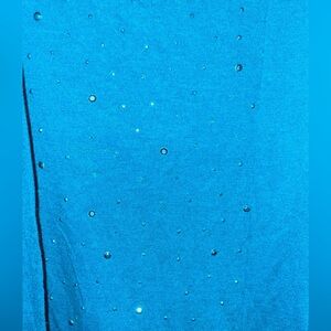 The turquoise blue—perfect for adding a touch of sparkle to any outfit. This medium-sized ensemble features an open-front cardigan sweater paired with a matching sleeveless camisole top, both adorned with delicate sequin accents on the camisole for subtle shimmer.