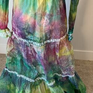 Vintage Tie Dye Purple Green Boho Hippie Prairie Long Sleeve Dress Size Small?