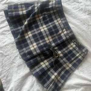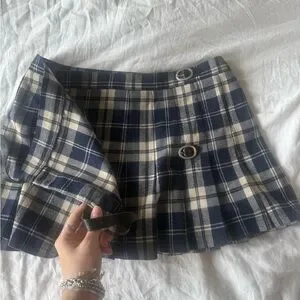 Brandy Melville Navy and Cream Plaid Mini Skirt