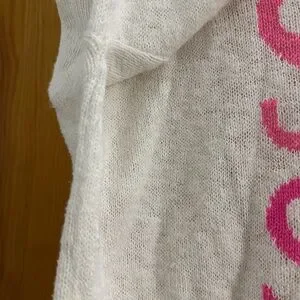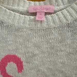 Lilly Pulitzer Medium ‘Sun, Sand Sea’ Women's White Sweater minor piling as seen in picture. Chic white sweater with bold pink and blue lettering. Perfect for casual wear.