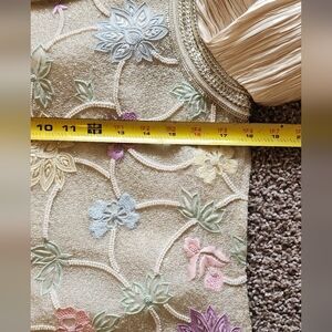 This elegant dress features intricate floral embroidery on a soft cream base. Perfect for any special occasion. vintage. shown in metropolitan museum in New York !