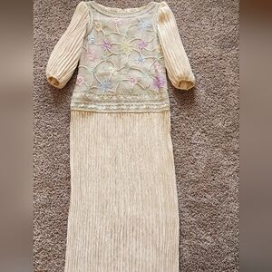 Mary Mcfadden Elegant Floral Embroidered Sequined Dress Sz 8