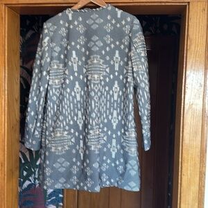 NWT H&M jacket in a neat pattern size 8. It doesn’t have a zipper or buttons so it’s just a layering piece that would be cool over a dress, with jeans and a tank….all sorts of ways!