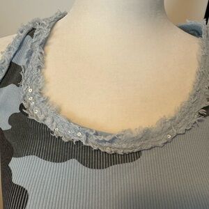 Stylish camouflage tank top perfect for casual outings. Sequins on the trim. Features a comfortable fit and trendy design.