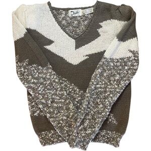 Gray and White V-Neck Sweater