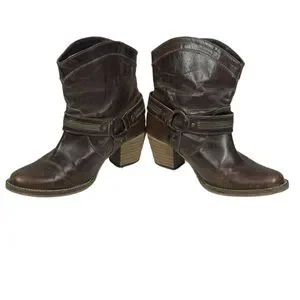 Dingo Metro Leather Ankle Boots Size 9 Harness Zipper Accents Urban Boot Brown